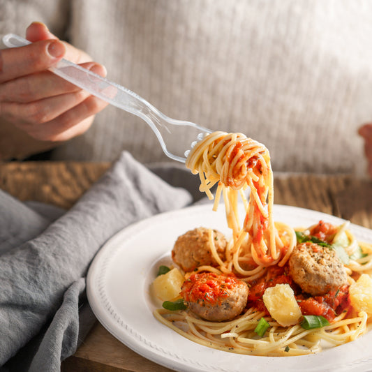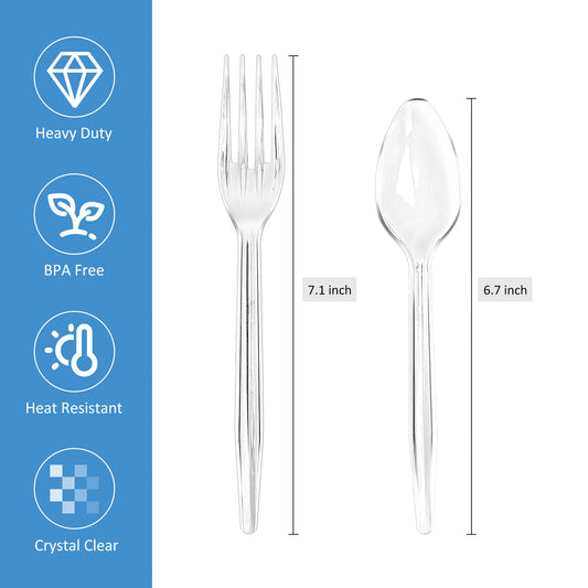 EcoDispose 100 Count Disposable Clear Plastic Forks Heat Resistant and BPA Free, Heavy Duty Durable Disposable Cutlery for Party Event Supply