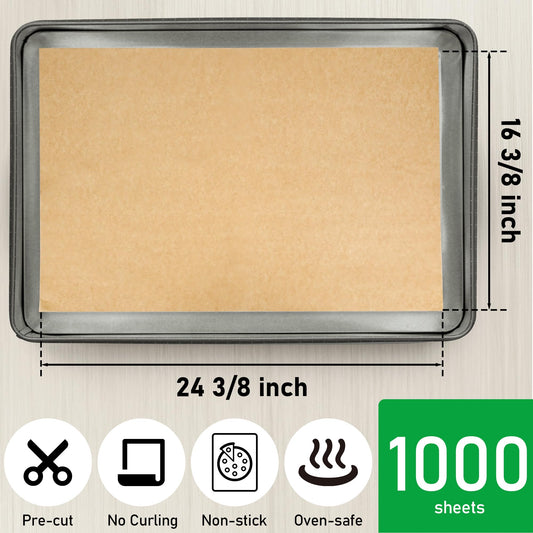 EcoDispose 1000 Pcs, 16-3/8" x 24-3/8" Non-Stick Precut Parchment Paper Baking Sheets Full Pan liner for Bake