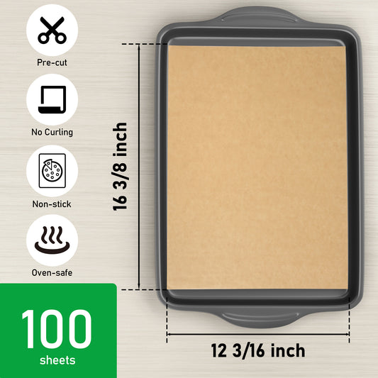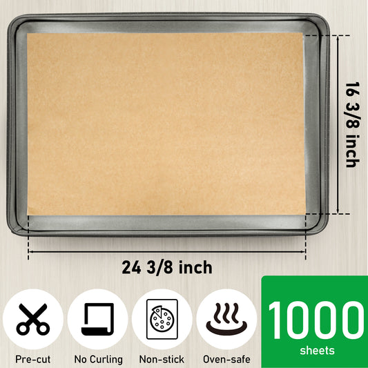 EcoDispose 16-3/8" x 24-3/8" Unbleached Non-Stick Precut Parchment Paper Baking Sheets Full Pan liner for Bake