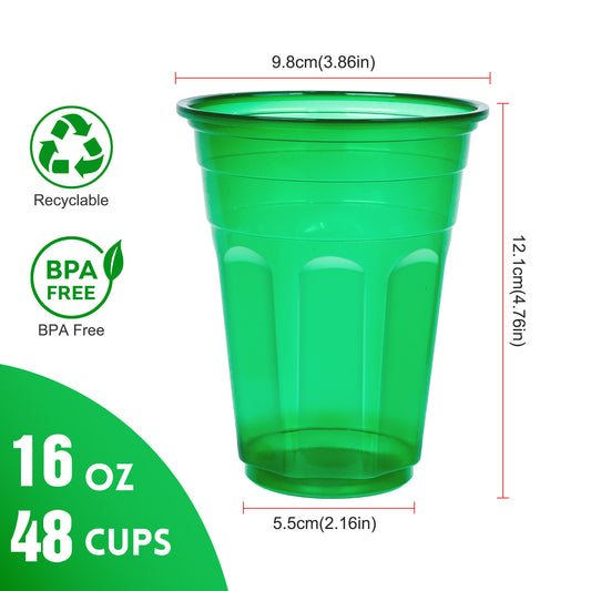 EcoDispose 16 Oz Plastic Cups, 4 Colours Assorted 48 Count Spill Proof Reusable Cups, BPA-Free, Perfect for Party