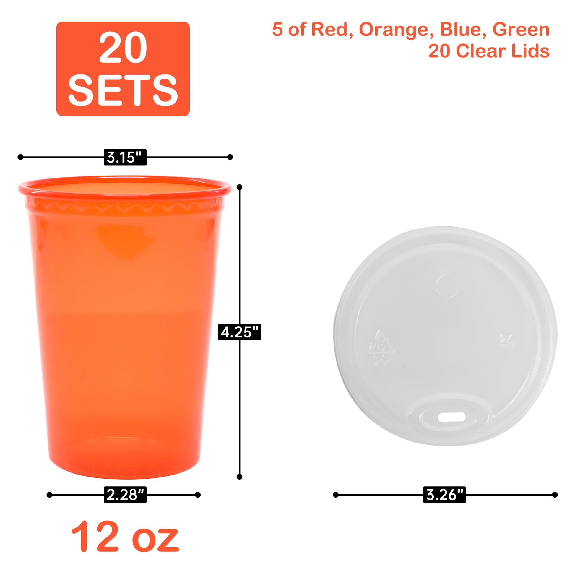 EcoDispose 12 Oz Kids Sippy Cups, 20 Count Spill Proof Reusable Cups, BPA-Free, 4 Colours Assorted Perfect for Party